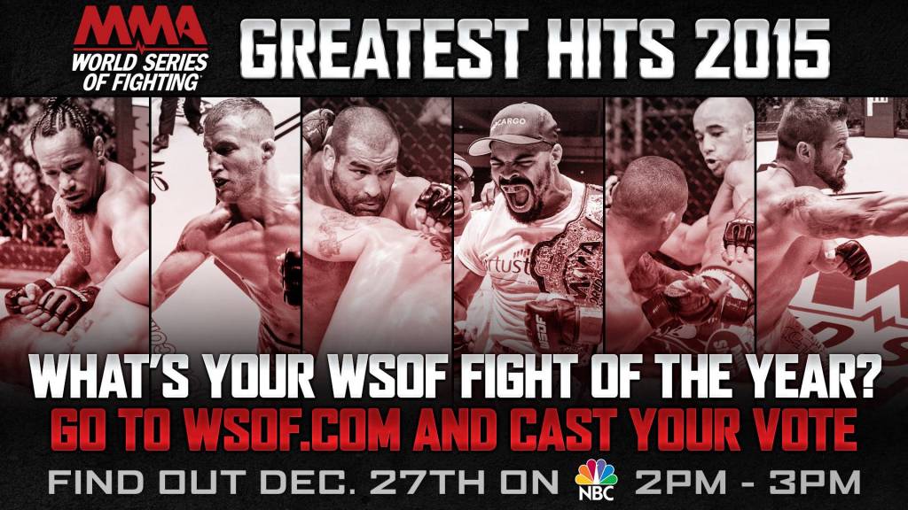 LAS VEGAS –World Series of Fighting (WSOF.com) will return to NBC with a special, one-hour program filled with an assortment of the most memorable and impactful moments of 2015 in the decagon cage, on Sunday, December 27, at 2 p.m. ET/11 am P.T.