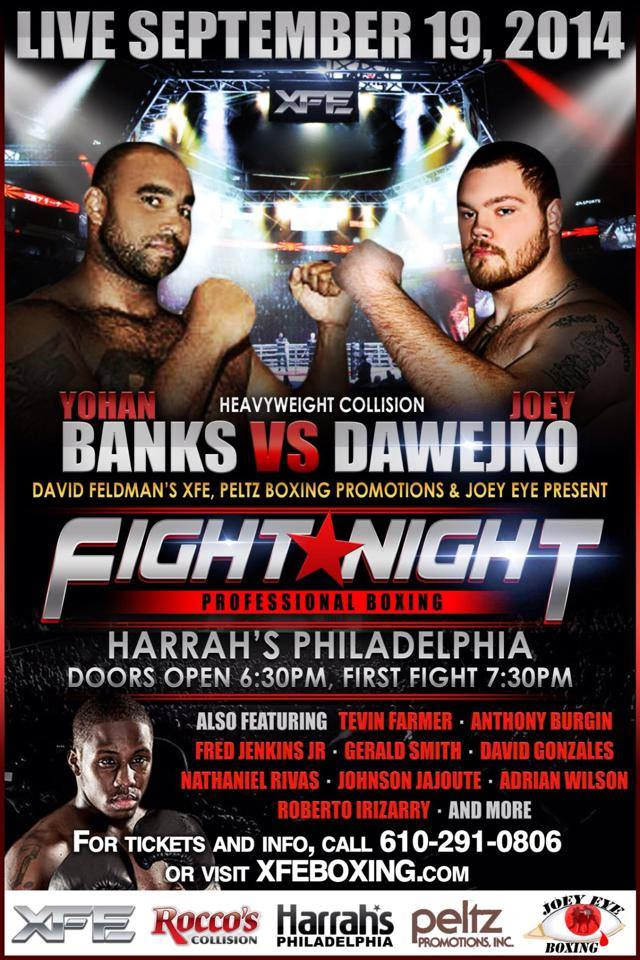 CHESTER, PA — On Friday, September 19, Heavyweight Joey Dawejko take on Yohan Banks in the featured 8-round bout at Harrahs Philadelphia.