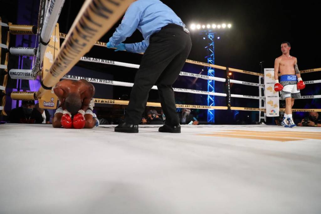 En los combates preliminaries transmitidos por la aplicación Twitch, el prospecto Jorge Díaz fulminó a Felipe Muñoz con potente gancho a la mandíbula en el segundo asalto en combate escenificado en las 147 libras.