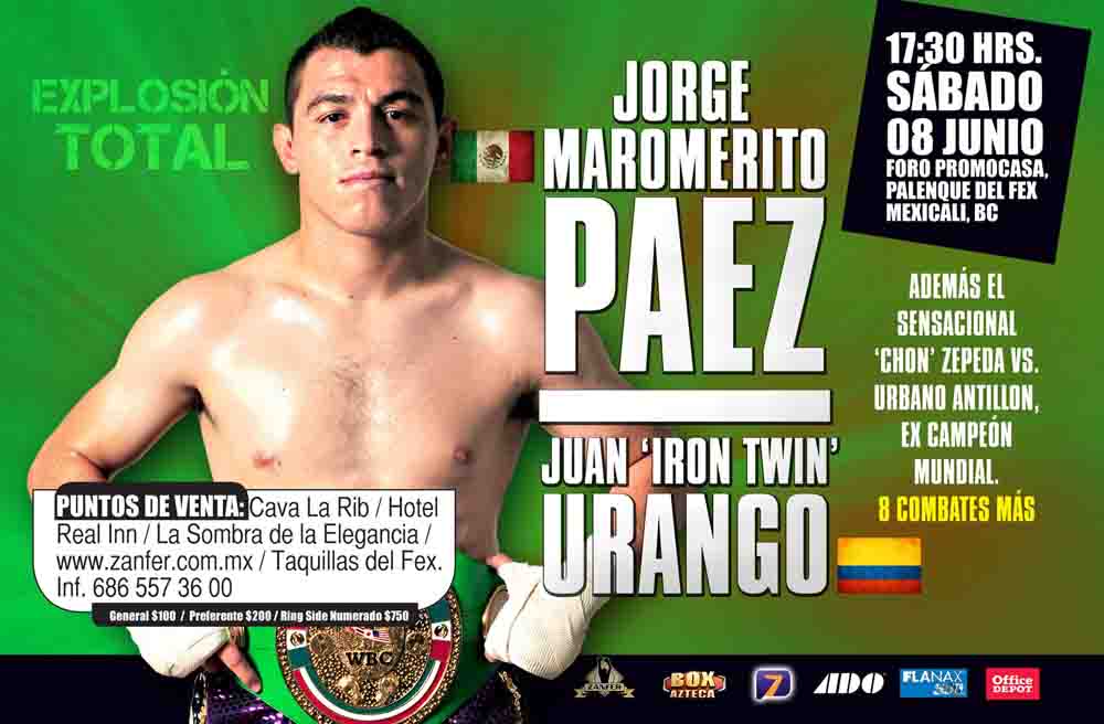El “Maromerito” (34-4-1, 20 ko’s) se enfrentará al peligroso ex monarca del mundo el colombiano Juan Urango (24-3-1, 19 ko’s) el sábado 8 en el Foro Promocasa del Palenque del Fex en la capital bajacaliforniana, en una promoción de Zanfer que será transmitida por la “Casa del Boxeo”, Azteca 7.
