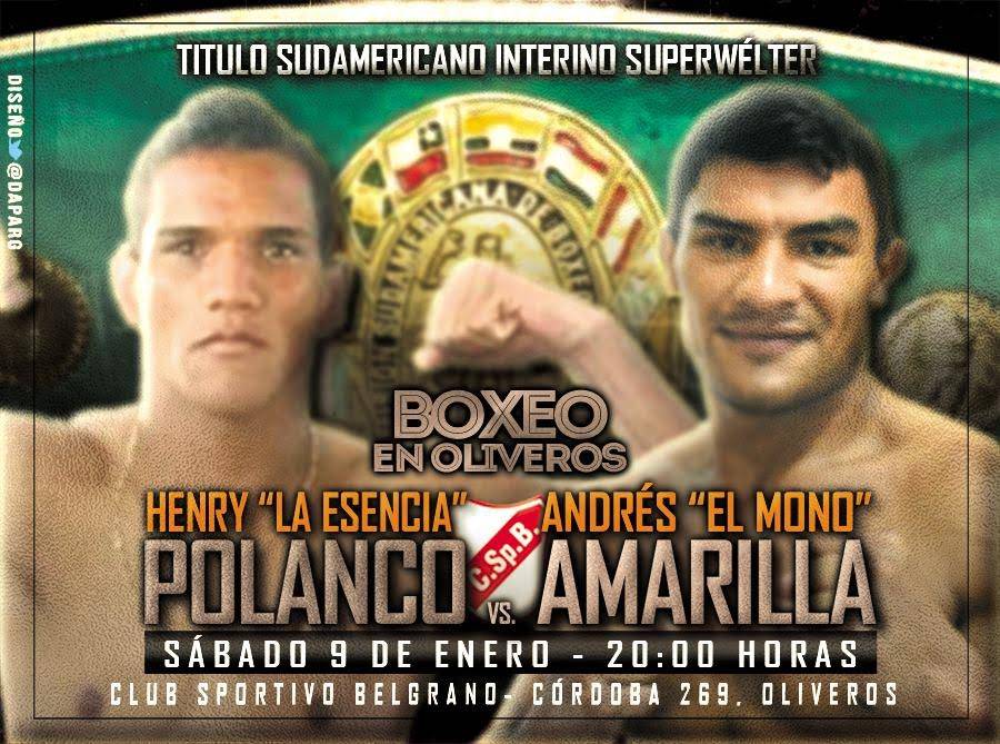 La misma tendrá como protagonistas estelares al invicto dominicano radicado en la Ciudad Autónoma de Buenos Aires, Henry David “La Esencia” Polanco (6-0, 2 KO) y al sorprendente santafesino Andrés Gabriel “el Mono” Amarilla (6-3-2), quienes chocarán entre sí por la disputa del título sudamericano interino superwélter, que se encuentra vacante.