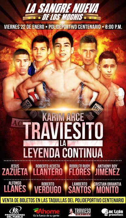 México – El próximo 22 del presente mes se reanuda la actividad boxística del año de Promociones del Pueblo en Sinaloa con la cartelera en la cual toman parte ‘La Sangre Nueva de Los Mochis’, encabezada por Karim Arce ‘El Traviesito’, pero en el respaldo aparecen jóvenes prospectos que están bajo el respaldo de deLeón Promotions y otros más de Travieso Promotions.