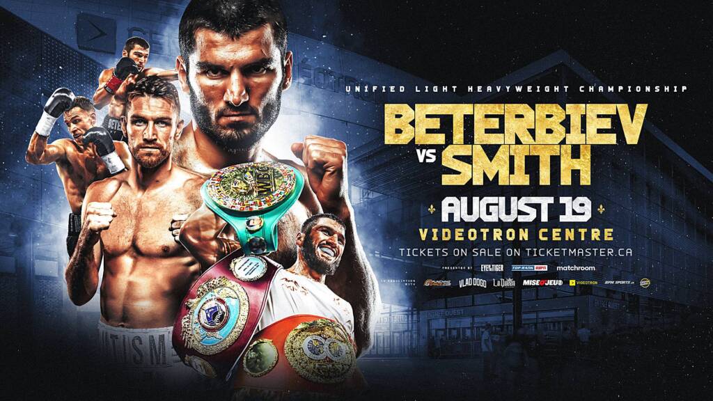 CIUDAD DE QUEBEC, Canadá — King Artur y sus tres cinturones mundiales regresarán a Canadá. El residente de Montreal Artur Beterbiev, campeón mundial unificado de peso semicompleto CMB/OMB/FIB, defenderá sus cinturones contra el contendiente No. 1 del CMB Callum “Mundo” Smith el sábado, 19 de agosto en el Videotron Center en la ciudad de Québec, Canadá.