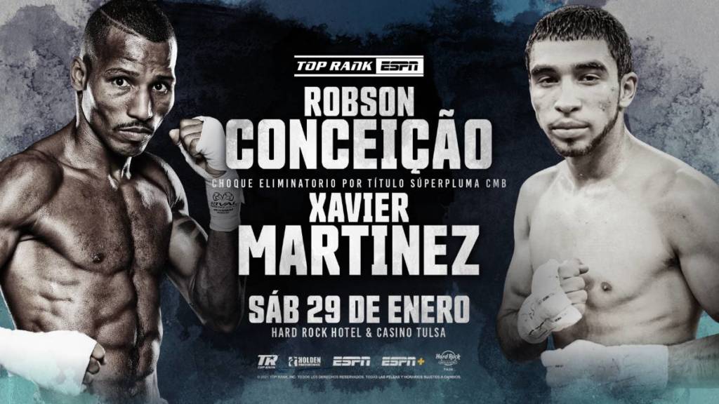 Martínez firmó recientemente un pacto de múltiples peleas con Top Rank y buscará brillar en su debut promocional. El choque Conceição-Martinez y una pelea co-estelar se transmitirán en vivo por ESPN y ESPN Deportes (transmisión simultánea en ESPN+) a las 10 p.m. ET / 7 p.m. PT. Los combates preliminares se transmitirán en vivo y exclusivamente por ESPN+.