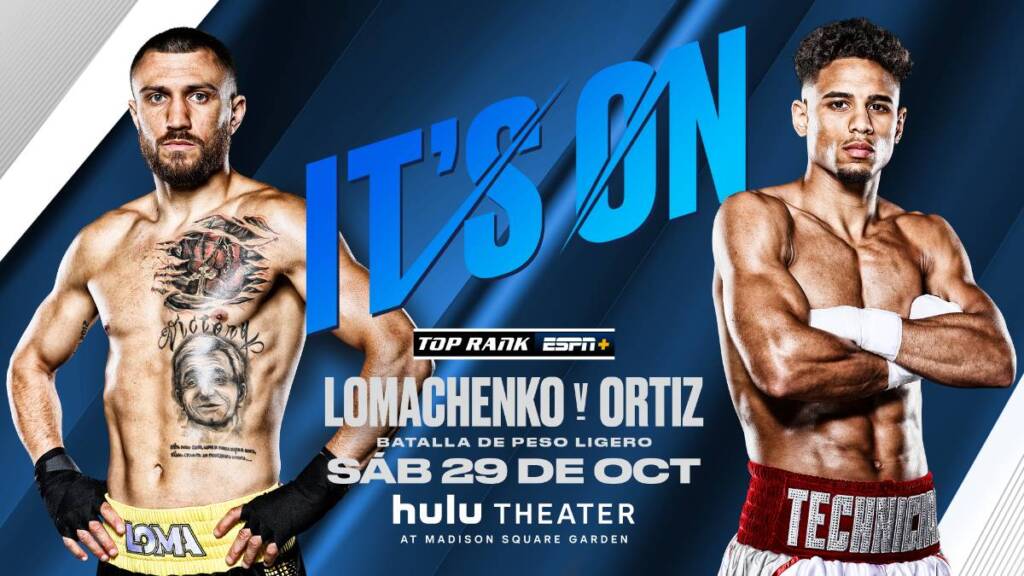 Vasiliy Lomachenko, un campeón mundial de tres-divisiones, hará su regreso triunfal a la ciudad de Nueva York en un evento estelar a 12 asaltos el sábado 29 de octubre contra el invicto contendiente Jamaine “The Technician” Ortiz en el Hulu Theater del Madison Square Garden.