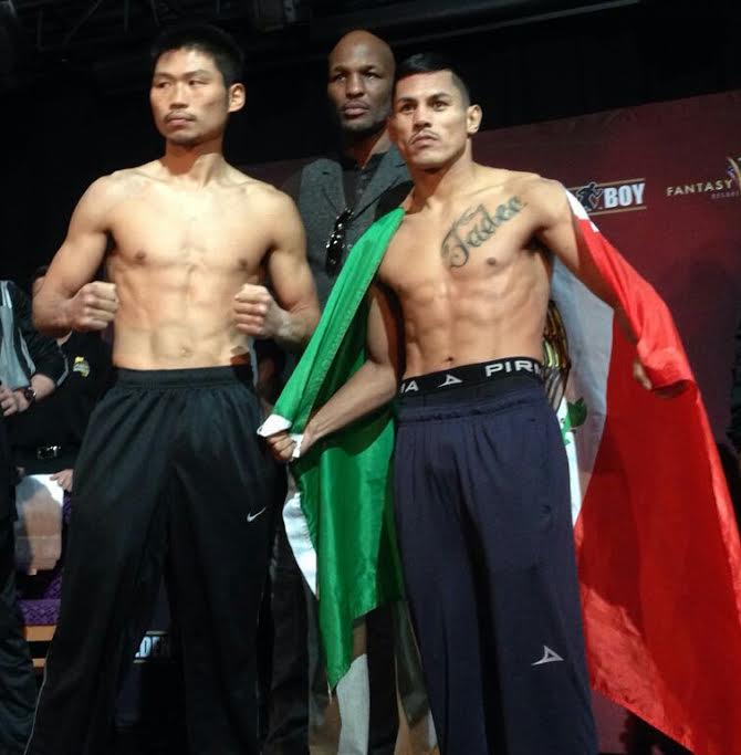 Con la seriedad y determinación que le caracteriza el nipón se acercó a la balanza y registró los 58.900 kilogramos exactos que marca el reglamento, por lo que fue declarado apto para medirse con el mexicano en un duelo que promete ser explosivo.