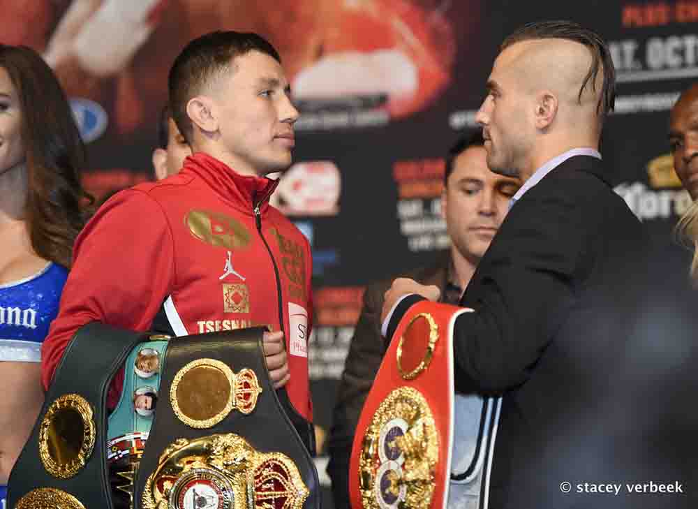 Prensa AMB. 14 de octubre.- No fue sorpresa la promesa hecha por el súper campeón AMB e interino CMB de las 160 libras, Gennady Golovkin, y el monarca de la FIB, David Lemiux quienes se medirán este sábado en la noche, en el Madison Square Garden de Nueva York.