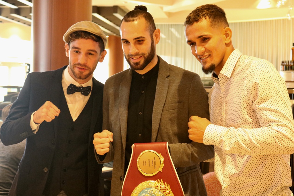 Durante la conferencia de prensa la OMB le entregó la correa que acredita como campeón peso ligero (135 libras) a José “Sniper” Pedraza, quien el pasado sábado se coronó al derrotar al mexicano Raymundo Beltrán en Arizona.