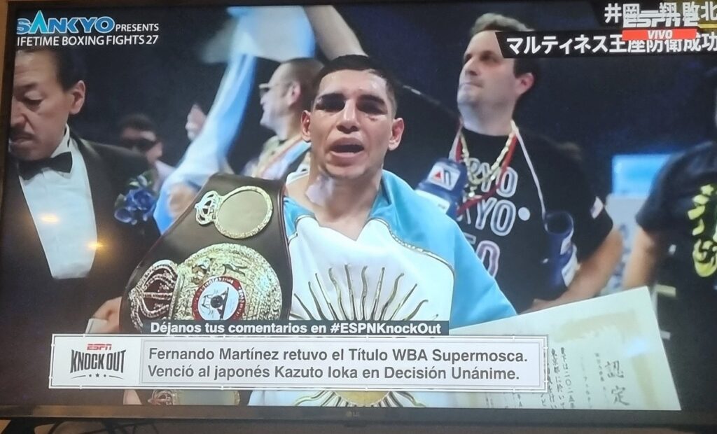 Con un emotivo ingreso al cuadrilátero del “Pumita” Martinez con la emblemática “Un´estate italiana (notti magiche)” de Edoardo Bennatto y Gianna Nannini, el tema oficial del Mundial de fútbol de Italia 90 y quizás la mejor canción en la historia de los mundiales, rodeado de su DT Rodrigo Calabrese, el ex campeón mundial y su actual manager Marcos “Chino Maidana”, el matchmaker y colaborador Gustavo Martín “Pileta” Maidana, el doctor Quintero y un pequeño séquito ondeando la bandera argentina y ante un público japonés fanático del box y que colmó las instalaciones del estadio para apoyar a su ex campeón mundial Kazuto Ioka, se desarrolló un excelente y entretenido combate, que fue intenso desde su comienzo ya que no hubo rounds de “estudio”. En el primer tramo del combate, Martinez impuso levemente su ritmo, lanzando una mayor cantidad de golpes y tratando de tomar el centro del ring ante Ioka, que optó por trabajar de contra, con golpes al cuerpo abajo (especialmente buscando el hígado del argentino), cuidándose mucho en defensa, haciendo cintura y tirando menos golpes que el argentino. En esos primeros rounds, prevaleció un poquito más el ímpetu y el constante ir al frente de Martínez que la serenidad y la buena defensa pero poca cantidad de golpes lanzados por parte del nipón. En la segunda mitad del pleito se vio lo mejor de Ioka, quien comenzó a trabajar mucho más, sus golpes empezaron a llegar a la humanidad del campeón (cortes en el pómulo izquierdo y también cerca del ojo derecho, Ioka también tenía marcas en su cara) y su trabajo dio sus frutos en el 10° round cuando Martinez tratando de acorralar a Ioka recibió dos voleados de izquierda, uno lo conmovió y el otro lo derribó. Pero Martinez, se repuso, se levantó (un poco conmovido y con algunas dificultades para caminar) y lo sorprendente fue que en lugar de tratar de “caminar” el ring o apostar al clinch para llegar al final de pie de este round que le faltaba mucho tiempo para que termine, salió a fajarse y a demostrar toda su bravura y valentía hasta el campanazo de finalización del round. Llegaron al final del pleito y el último round (el número 12) fue el más emotivo del match y para aplaudir de pie a ambos contendientes, porque dieron todo de sí, lanzaron golpes a rabiar como si la pelea estuviera iniciándose, demostraron toda su garra y estirpes de campeones, un poco mejor lo de Martinez, que se llevó el round y el pleito.