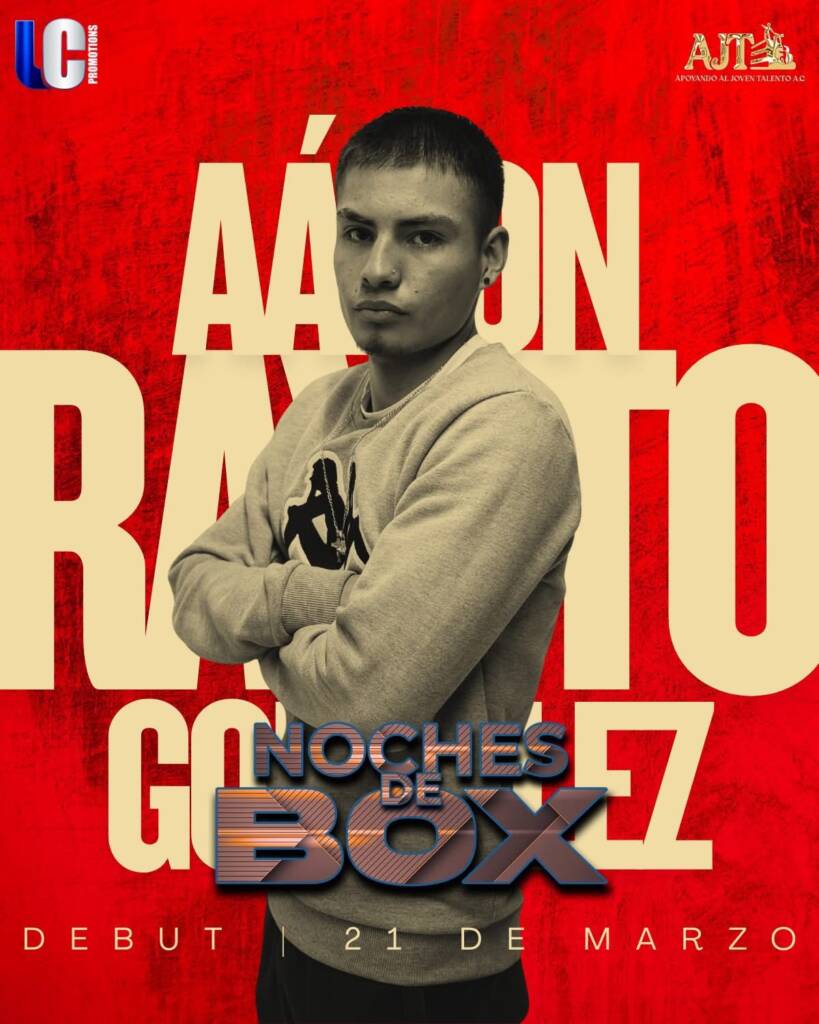 Una de las grandes promesas del boxeo nacional, Aarón “El Rayito” González se dispone a debutar en el terreno profesional en el atractivo cartel que presenta LC Promotions, firma encabezada por Luis Andrade Mendoza, este sábado en el centro de espectáculos Foro San Rafael de la capital mexicana.