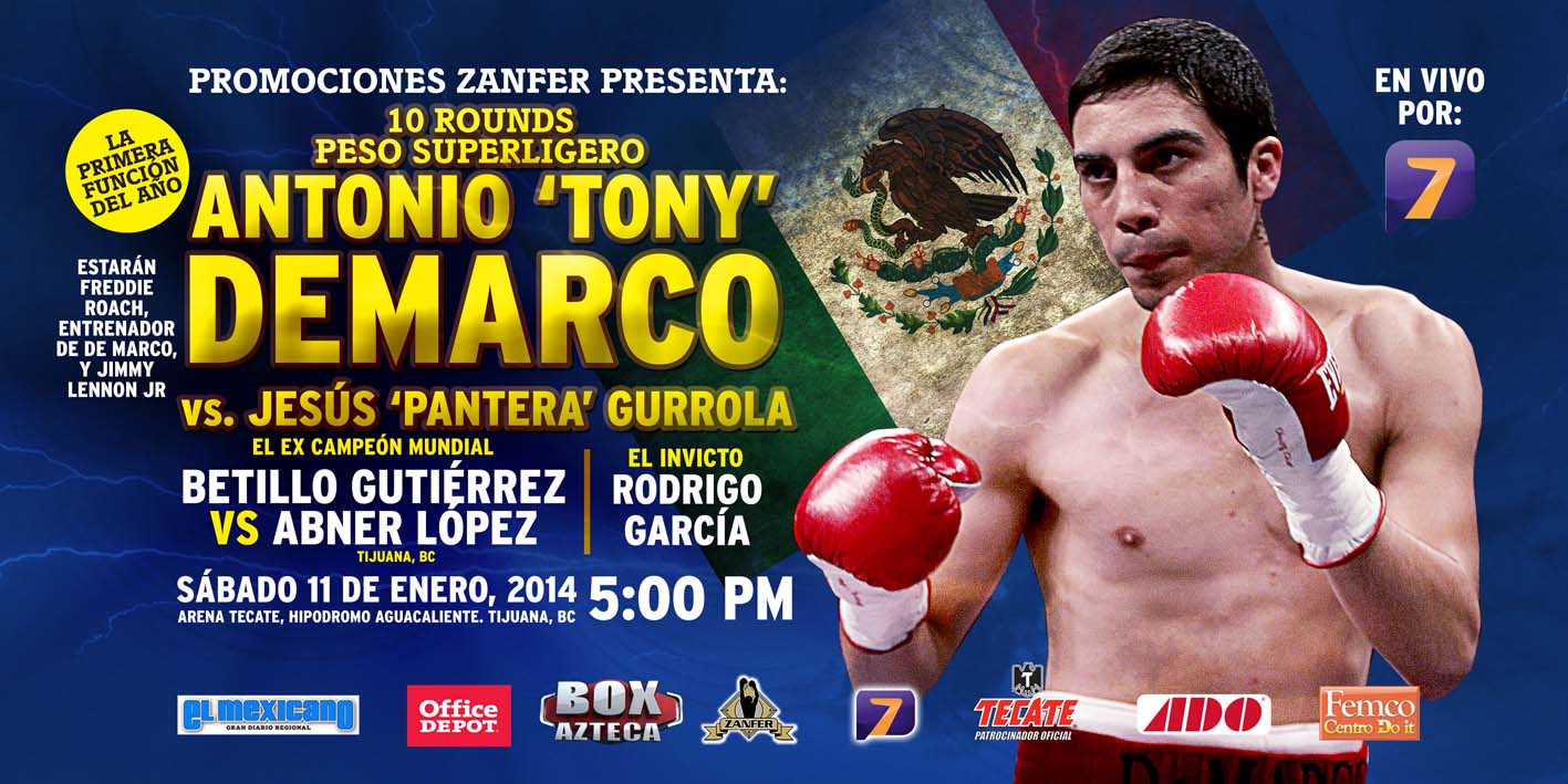 La que se espera sea una espectacular contienda entre el ex monarca mundial Ligero WBC Tony de Marco y el mexicalense Jesús Gurrola,  abrirá la temporada 2014 de Zanfer, el sábado 11 de enero en  la Arena  Tecate Tijuana y que será transmitida por TV Azteca