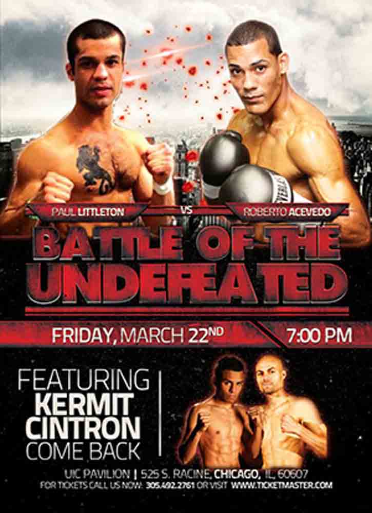520Although it may be the first big test of his professional boxing career, Puerto Rican prospect Roberto Acevedo (7-0, 4 KOs) says he’s treating it like just another fight when he takes on Chicago’s also undefeated Paul Littleton (6-0-1, 4 KOs) on Friday, March 22, 2013, at Chicago’s UIC Pavilion.
