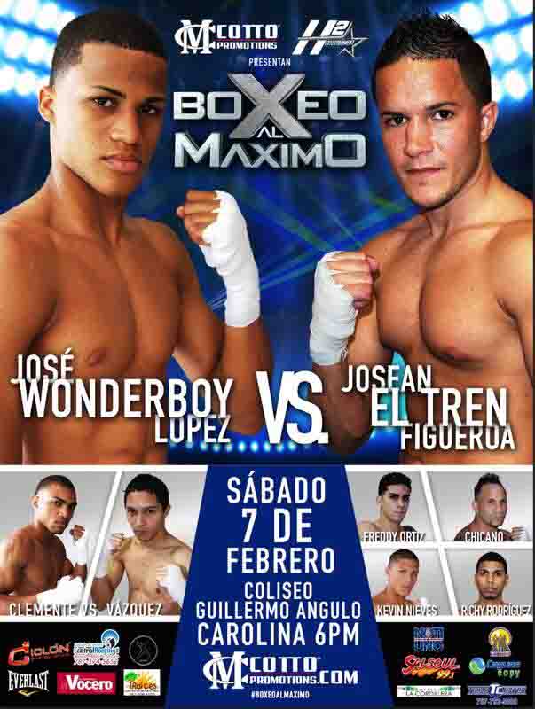 Caguas, PUERTO RICO – El supergallo carolinense José ‘Wonder Boy’ López, coprotagonista de una de las mejores peleas y seguramente la más controvertida del 2014, regresará al ring el próximo 7 de febrero, cuando se mida en un choque programado a ocho asaltos con Jósean ‘El Tren’ Figueroa en el turno estelar de la cartelera que presentará ‘Miguel Cotto Promotions’ junto a ‘H2 Entertainment’ en el Coliseo ‘Guillermo Angulo’, de Carolina.