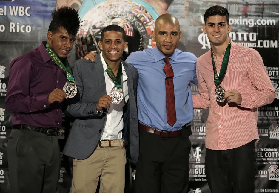 (De izquierda a derecha) Antonio Ortíz, Jantony Ortíz, Miguel Cotto y Freddy Ortíz)