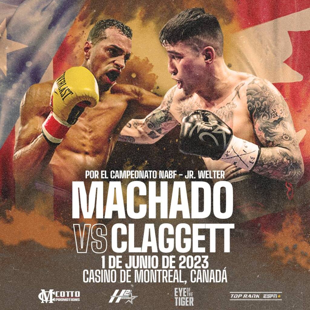“Machado tiene una gran oportunidad el próximo primero de junio ante Steve Claggett, será una noche explosiva. Con una victoria sólida se pone a las puertas de una oportunidad de campeonato mundial”, comentó Héctor Soto presidente y promotor de Miguel Cotto Promotions y H2 Entertainment. Alberto Machado y su equipo de trabajo partirán hacia Montreal, Canadá el próximo domingo 28 de mayo.