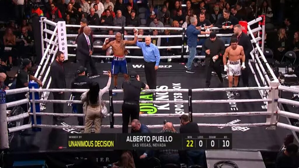 Puello derrotó ampliamente por la vía de la decisión unánime a Ector Madera, quien nunca pudo revertir a las acciones a su favor, ya que ‘La Avispa’ fue el hombre más contundente con sus grandes combinaciones, velocidad de manos y una presión que fue incesante y mayor a medida que se desarrollaba el enfrentamiento.