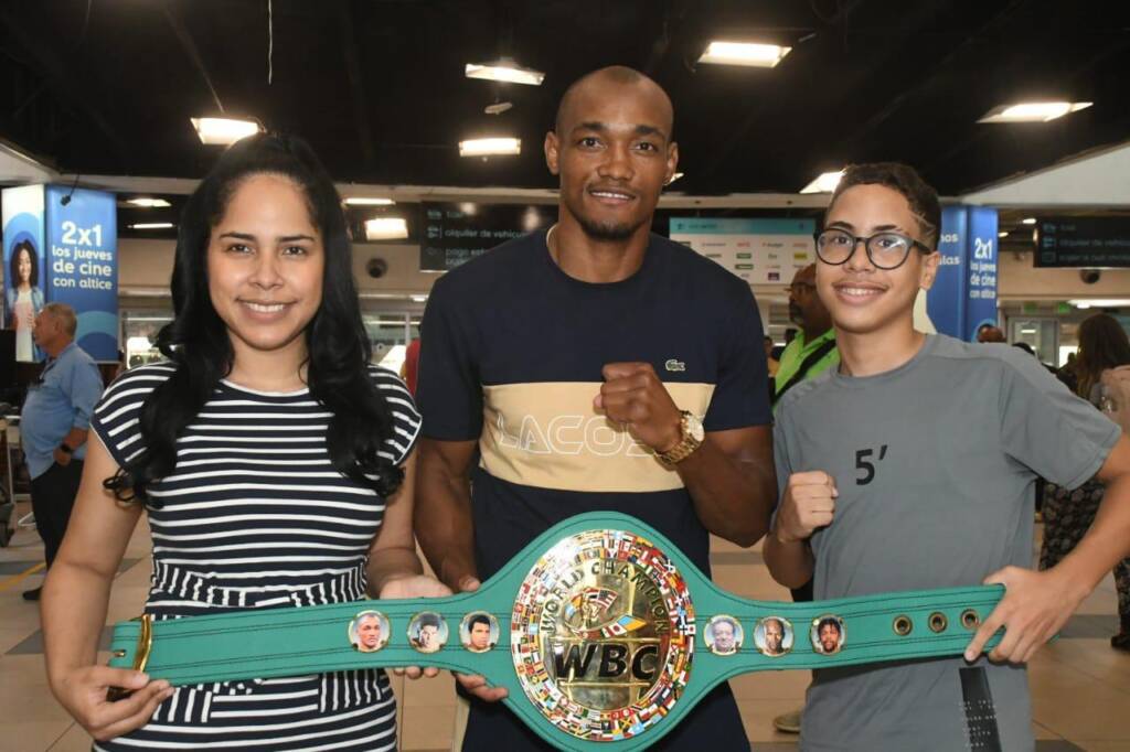 ‘La Avispa’ fue recibido por los miembros de su equipo de trabajo en Shuan Boxing Promotions dirigido por la CEO de dicha compañía, la señora Bélgica Peña, colegas del mundo del boxeo, así como también fanáticos del pugilista y el flamante Comisionado Nacional, Ramón Valdéz Viloria.