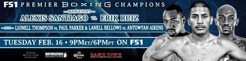 LAS VEGAS (February 1, 2016) – Alexis “Beaver” Santiago (20-3-1, 8 KOs) goes for his tenth straight win when he takes on California’s Erik Ruiz (15-4, 6 KOs) in the 10-round bantamweight main event of Premier Boxing Champions (PBC) TOE-TO-TOE TUESDAYS on FS1 and BOXEO DE CAMPEONES on FOX Deportes Tuesday, February 16 from Sam’s Town Live in Las Vegas.