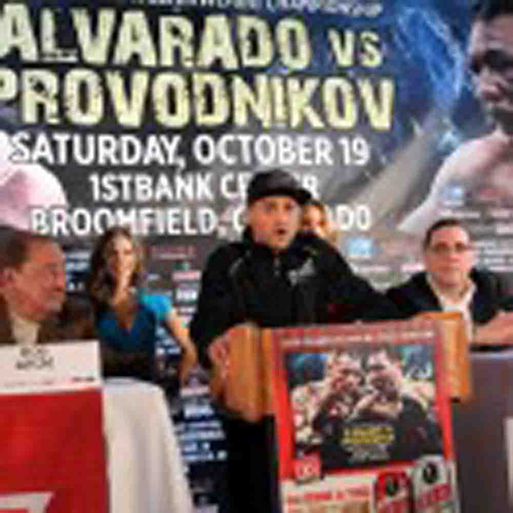 DENVER, Colorado – Apesar de que ambos boxeadores le estan poniendo los toques finales a su preparacion aqui en Denver, el campeon de peso welter jr. de la OMB, Mike “Mile High” Alvarado y su retador Ruslan Provodnikov, este martes se volvieron a ver las caras del anuncio oficial de su combate.Alvarado quien es oriundo de Denver, hizo toda su preparacion en esta ciudad, mientras que Provodnikov tiene tres semanas en Denver, tratando de aclimarse a la altitud para su combate de ese sabado.