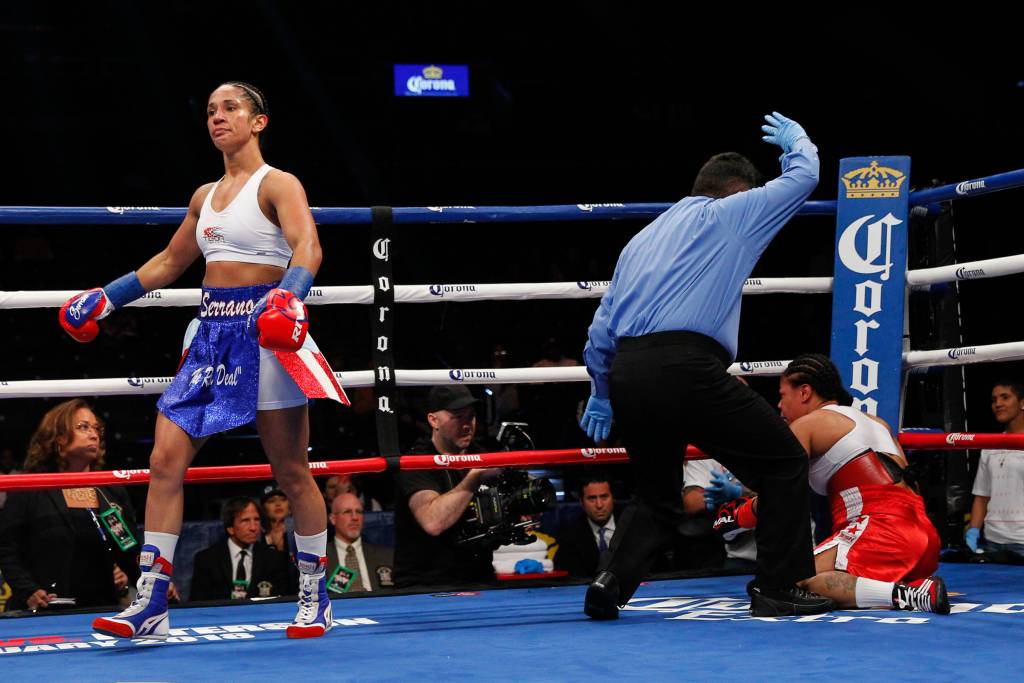 Desde el comienzo, Serrano salió a buscar una pelea agresiva y rápido obtuvo la mejor parte cuando envió a Hernández por primera vez a la lona por un golpe al cuerpo. La agresión continuó por parte de la boricua hacia la veterana dominicana, hasta que ella visitó la lona por tercera vez, acto que provocó la intervención del árbitro para detener el combate al minuto 2:33.