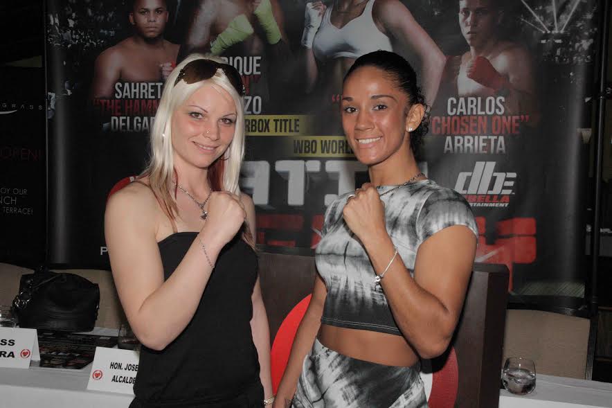 San Juan, PUERTO RICO – En pesaje celebrado esta tarde en el Restaurante Lemon Grass del Hotel Caribe Hilton, la cuatro veces campeona mundial en tres divisiones y actual monarca pluma de la OMB, Amanda ‘Real Deal’ Serrano (27-1-1, 20KO’s) y la sensacional pegadora húngara, Edina ‘DND’ Kiss (6-0, 3KO’s), cumplieron con el peso máximo para el combate estelar de la cartelera ‘Latin Fury’, a celebrarse mañana, viernes, 22 de abril en el Coliseo Rubén Zayas de Trujillo Alto.