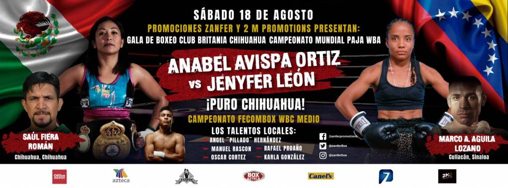 MÉXICO – La campeona mundial de peso Mínimo AMB, Anabel “Avispa” Ortíz, buscará llegar a diez defensas exitosas este sábado 18 encabezando una atractiva función a realizarse en el Club Britania de la Ciudad de Chihuahua, Chihuahua con transmisión por la Casa del Boxeo, Azteca 7 en una co promoción de Zanfer y 2 M Promotions.