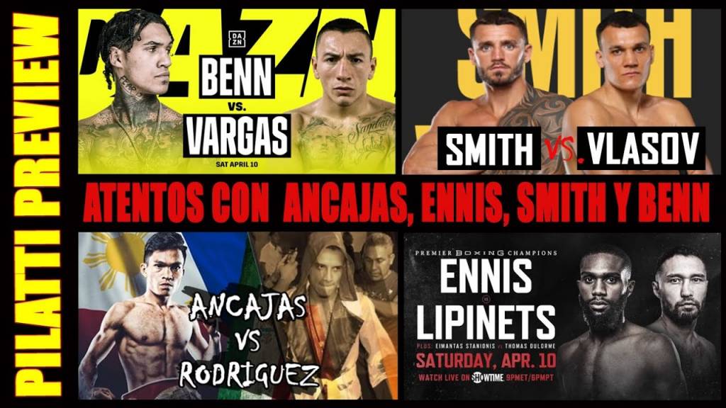 Tendremos un sábado de boxeo intenso, este 10 de abril. Se destacan las peleas de Conor Benn con Samuel Vargas, Joe Smith, Jr. contra Maxim Vlasov, Jaron Ennis ante Sergey Lipinets y sobre todo la batalla por el título FIB gallo Junior entre el campeón Jerwin Ancajas y el retador mandatorio, el mexicano Jonathan ‘Titán’ Rodríguez.