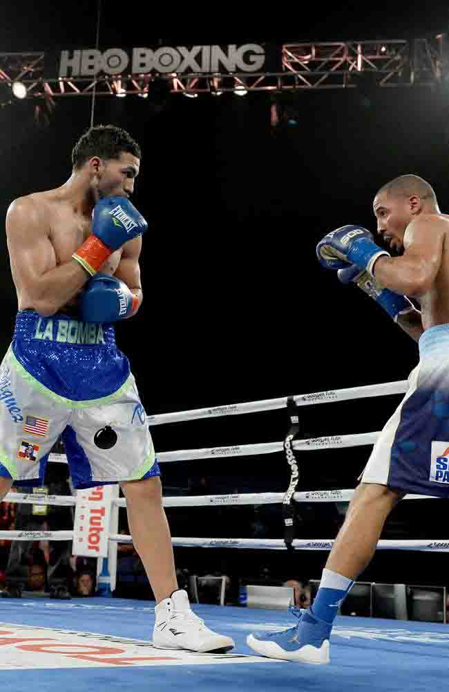 En su combate ante Edwin Rodriguez (izquierda) quizá no fue una pelea preferida de los amantes del buen boxeo porque en momentos parecía una lucha de sumo por los constantes candados, en los ojos del referí fueron provocados por los dos combatientes que fueron penalizados con dos puntos en sus tarjetas por no hacer caso de las instrucciones de detener las acciones cuando el referí lo ordeno.