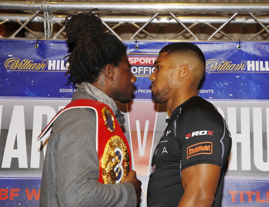 LONDON (April 7, 2016) – IBF Heavyweight World Champion Charles Martin and fellow unbeaten British Olympic Gold Medalist Anthony Joshua faced off at the final press conference on Thursday at Four Seasons Hotel in London as they near Saturday’s heavyweight showdown, live on SHOWTIME from The O2.