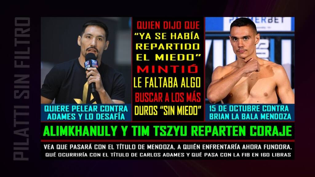 El campeón mundial OMB del peso mediano Zhanibek Alimkhanuly y el próximo campeón superwelter del mismo organismo, Tim Tszyu, dieron una clase de coraje casi al mismo tiempo. El australiano se confirmó que expondrá su título contra Brian ‘La Bala’ Mendoza y Alimkhanuly retó públicamente al campeón interino del CMB, Carlos Adames.