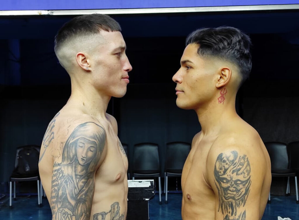 Finalmente, en división ligero, el bonaerense Agustín Torres (60,700 kg. y 2-3) chocará con el bonaerense Facundo Díaz (60,200 kg. y 1-10, 1 KO), a cuatro capítulos.