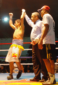SALTA, Tartaga – en combate que se realizó en el Estadio de Básquet de Newll Old Boys, se disputo el Titulo Latino del Consejo Mundial de Boxeo, entre el crédito Local Ricardo “Fantasma” Santillán, 22-00-00 (en la foto) que hasta allí, ostentaba tres títulos El Argentino, Mundo Hispano y Sudamericano con el Dominicano radicado en Buenos Aires Diego “Pantera” Pichardo 12-04-01.