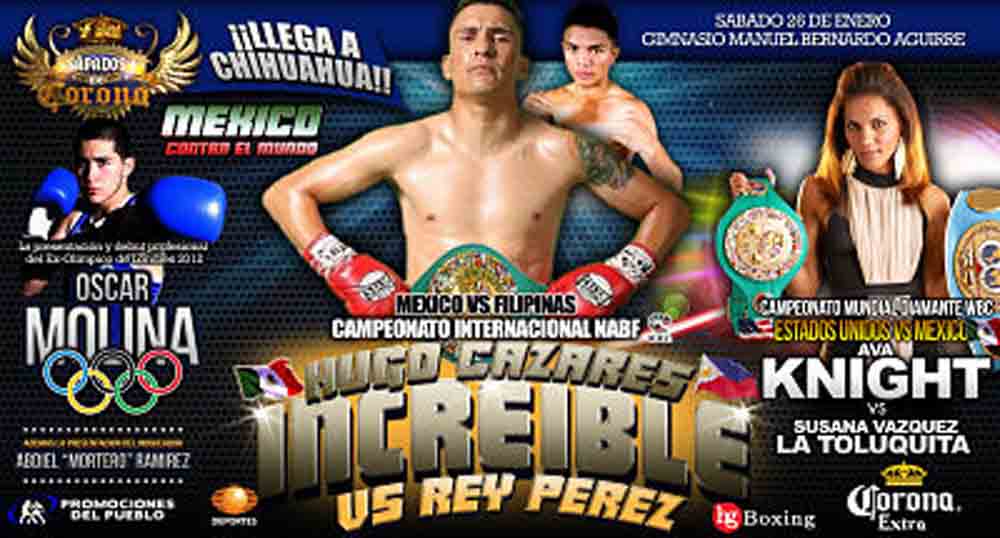 La campeona Diamante del Consejo Mundial de Boxeo, Ava ‘Lady of Boxing’ Knight comenzará este 2013 con una riesgosa pelea, ante Susana ‘Toluquita’ Vázquez; mientras que el bicampeón mundial Hugo ‘Increíble’ Cázares, buscará el cinto NABF gallo ante el filipino Rey Perez y el esperado debut del olímpico en Londres 2012, Óscar Molina en su natal Chihuahua, este 26 de enero.