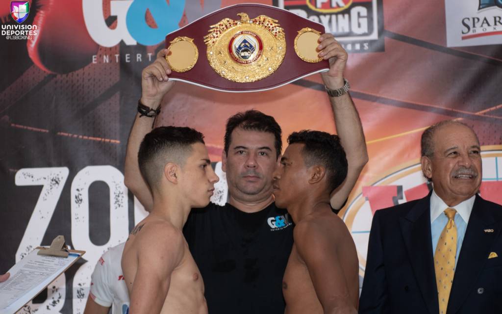 Foto: Univision DeportesEl talentoso prospecto bonaerense del partido de Lanús, Agustín Mauro “Avión” Gauto (9-0-0, 5 KO), y el avezado colombiano ex retador mundialista, José Antonio “Pulga” Jiménez (20-9-1, 9 KO), cumplieron con la báscula en Panamá, donde esta noche, en el Hotel El Panamá Centro de Convenciones & Casino, disputarán el título latino minimosca/48.988 kg/108 lbs de la Organización Mundial de Boxeo (OMB), vacante, a la distancia en diez rounds y en el marco de la 31ra. Convención anual que realiza dicho organismo, donde también se celebrarán otros duelos titulares. Televisa TyC Sports desde las 21:30 (hora Argentina) a través de su tradicional ciclo, Boxeo de Primera.