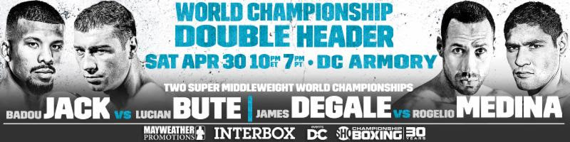NEW YORK (March 28, 2016)- A three-fight series to crown a unified divisional champion will begin on Saturday, April 30, when WBC 168-pound champion Badou Jack defends his title against former longtime titlist Lucian Bute, and IBF Champion James DeGale risks his belt against mandated challenger Rogelio Medina in a SHOWTIME CHAMPIONSHIP BOXING doubleheader live on SHOWTIME (10 p.m. ET/7 p.m. PT) from the DC Armory in Washington D.C.