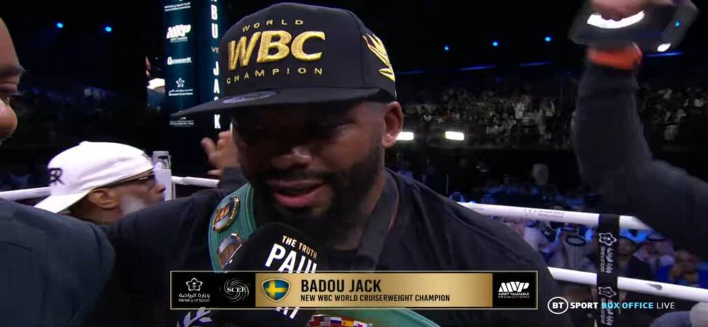 Por el título de peso crucero del CMB, el ex campeón mundial de dos pesos Badou Jack (28-3-3, 17 KOs) una vez más se convirtió en campeón mundial cuando detuvo a Ilunga Makabu (29-3, 25 KOs) en la duodécima y última ronda. Un primer asalto muy cerrado, con los dos boxeadores peleando de manera técnica. Una batalla de jabs en el segundo. Jack lo estaba haciendo mejor manteniéndose a distancia y alineando sus golpes. Makabu reunió los momentos finales.