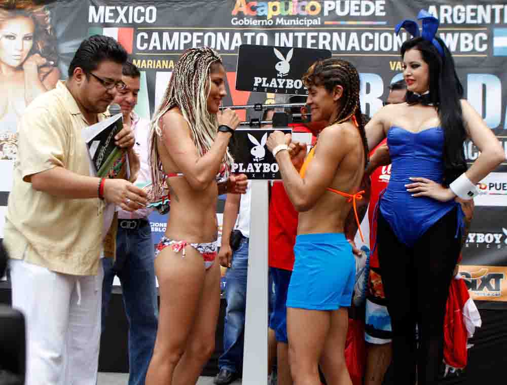 La mexicana Mariana “Barby“ Juárez, y su rival la argentina Vanesa Taborda aprobaron satisfactoriamente el pesaje reglamentario previo a su duelo de este sábado en el Centro de Convenciones de Acapulco, Guerrero; donde estarán disputando el título Internacional del Consejo Mundial de Boxeo en transmisión de Televisa Deportes.Un ícono de Acapulco, como es “La Quebrada“ fue el marco perfecto para que se llevara acabo la ceremonia de pesaje de la cartelera denominada “Viva Acapulco“, misma que organiza Promociones del Pueblo bajo el patrocinio de Playboy México y que llegará a millones de hogares completamente en vivo a través de la señal de “Sábados de Box“.
