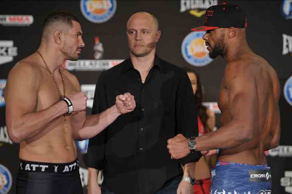 Albuquerque, New Mexico. (February 27, 2013) —The Bellator MMA weigh-ins have been completed with all fighters making weight in preparation for Bellator MMA’s February 28th event, where reigning Bellator MMA Light Heavyweight Champion Christian M’Pumbu prepares to defend his title against dominating Slovakian finisher Attila Vegh.