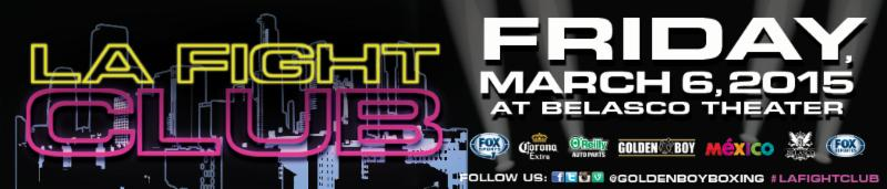 Los Ángeles, California 20 de Febrero de 2015. – Golden Boy Promotions se complace en anunciar que los boletos para el esperado estreno de LA FIGHT CLUB el viernes 6 de marzo desde el famoso The Belasco Theater se vendieron en su totalidad en una semana. No obstante, los fanáticos tendrán la oportunidad de ver la transmisión en vivo por FOX Sports 1 y FOX Deportes, y están invitados a unirse a los peleadores ya que después de la función el The Belasco Theater se convertirá en un club nocturno. Los próximos eventos de LA FIGHT CLUB están programados para llevarse a cabo el primer jueves de cada mes, el 2 de abril, 7 de mayo y 4 de junio.