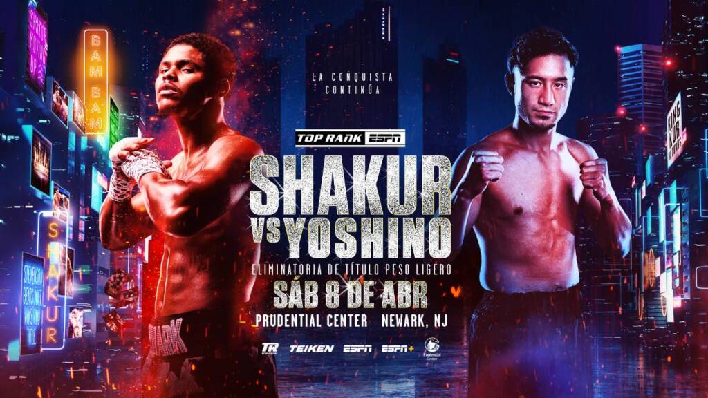 NEWARK, Nueva Jersey — Los boletos ya están a la venta para el combate eliminatorio por el cinturón mundial ligero del CMB entre el héroe local Shakur Stevenson y el noqueador japones Shuichiro Yoshino. El evento se efectuará el sábado, 8 de abril en el Prudential Center de Newark, New Jersey.