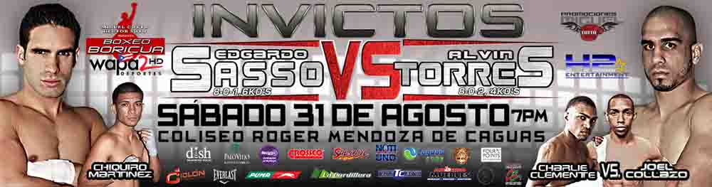 Caguas, PR- 31 de Julio – El sábado 31 de agosto en el Coliseo Roger Mendoza de Caguas se escribirá otra página en la historia del boxeo caliente en Puerto Rico cuando Promociones Miguel Cotto junto a H2 Entertainment presenten otra edición de su ya afamada serie televisiva “Boxeo Boricua WAPA 2: INVICTOS” desde el Coliseo Roger Mendoza de Caguas. Donde en la pelea estelar lo será entre los invictos; Edgardo “Sasso” López (8-0-1, 6Ko’s) y Alvin Torres (8-0-2, 4Ko’s) en un combate a 8 asaltos en la división super pluma. “Estoy muy contento de estar de vuelta al ring y de tener este gran reto frente a mi, estamos entrenando muy fuerte para obtener una victoria contundente y mantenerme invicto. Alvin será otro nombre más en mi record” comentó el contador público autorizado y estudiante de derecho Sasso López. Mientras que su rival el aiboniteño y tambien invicto confesó estar entrenando como nunca para obtener la victoria “Conozco a Sasso, sé como pelea. Lo hemos estudiado bien y llevaremos un plan de pelea que sabemos nos dará la victoria el sábado 31 de agosto. El no me intimida, ese dia será la noche que tanto he esperado”. El record profesional de Edgardo “Sasso” López y Alvin Torres produce 19 peleas en total con un total de 10 victorias por nocaut lo que representa que un 53% de sus victorias son por la via rápida. “Este es un gran combate para la fanaticada. Cuando decidimos realizar esta pelea sabíamos que iba a ser del agrado de muchos pues se están enfrentando invicto contra invicto que muy pocas veces se vé en el boxeo. Esa noche el mejor que esté preparado se llevará la victoria” comentó el promotor y empresario Héctor Soto. Además de esta gran pelea “Boxeo Boricua WAPA 2 INVICTOS” tendrá el combate entre el invicto y fuerte pegador José “Chiquiro” Martinez (8-0, 6Ko’s) tendrá en Jiovannie Fuentes (5-2, 4Ko’s) el reto más fuerte de su joven carrera. “El Chicano” Carlos Cotto (4-0,4Ko’s) se mide a Jimmy Suarez (2-4, 2Ko’s) a 6 asaltos en la división pesada. Tambien los invictos peso mosca Joel Collazo (3-0, 1Ko) se enfrenta a Charlie Clemente (4-0, 2Ko’s) a 6 asaltos. José “Wonder Boy” López (9-0, 7Ko’s) se mide ante el veterano Juan G. Cruz en las 122 libras a 6 asaltos y Yomar “The Magic” Alamo (1-0, 1Ko) se medirá a Milton López entre otros.