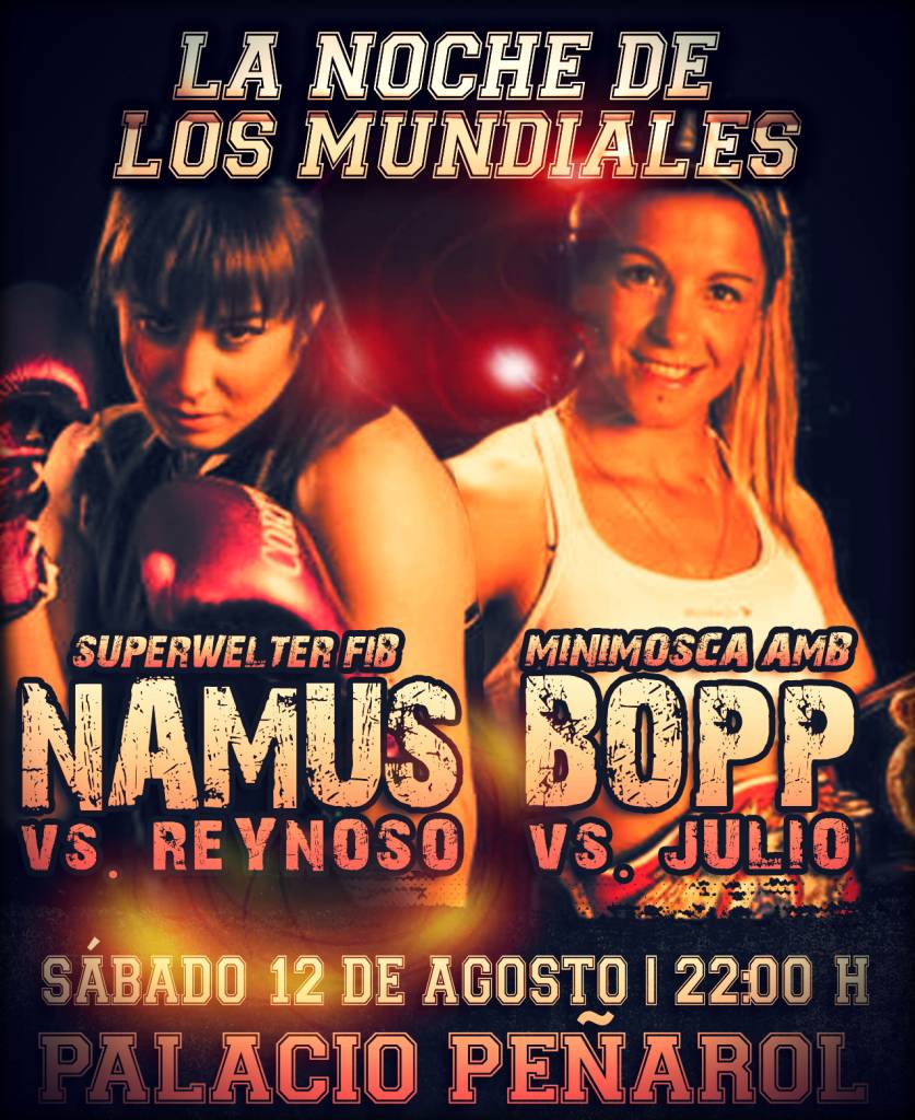 Montevideo, Urugüay: Chris Namus vs. Yamila Reynoso, 10 asaltos, por el campeonato mundial vacante superwélter femenino(F.I.B.); Yesica Bopp vs. Olga Julio, 10 asaltos, por el campeonato mundial supermosca femenino (A.M.B.) en poder de Bopp; Eduardo Abreu vs. Brian Laguna, peso super ligero, 6 asaltos.