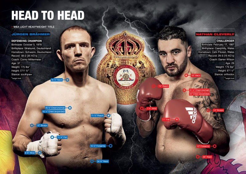 The WBA World Light Heavyweight Championship fight between Juergen Braehmer and Nathan Cleverly will be shown live on Sat.1 in Germany and Sky Sports in the UK.
