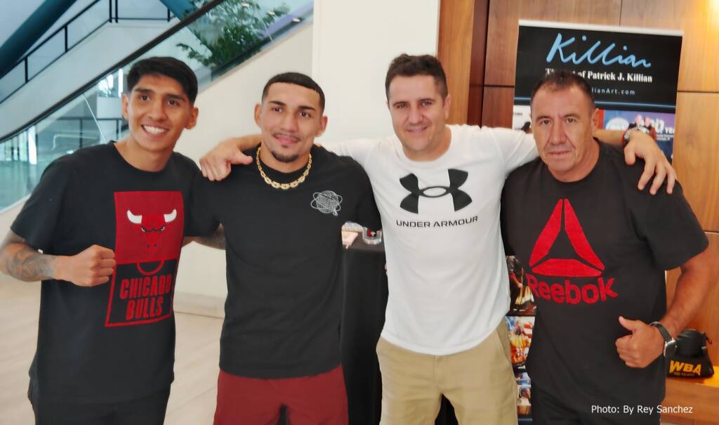 Benítez y su equipo de trabajo compartieron momentos con el campeón mundial Teofimo López a su llegada. Y ambos peleadores, se desearon suerte en sus combates. López será la pelea principal del evento cuando defienda su título contra el pugilista canadiense Steven Clagget.