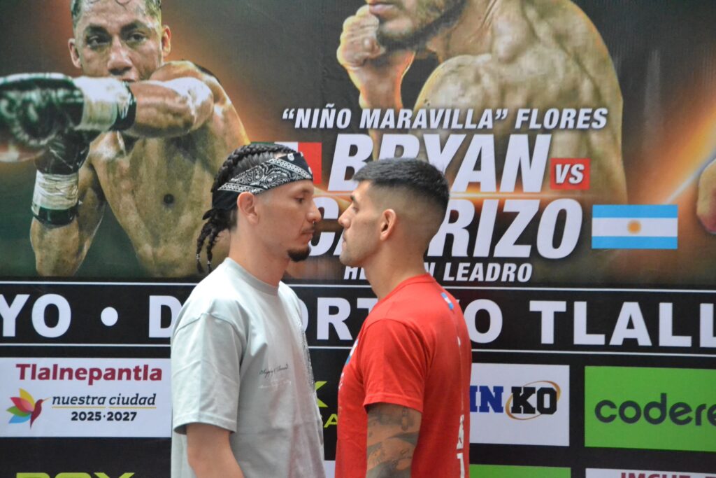 El argentino Hernán Leandro ‘El Zurdo’ Carrizo llegó a Tlalnepantla con la espada desenvainada, y de inmediato lanzó amenazas en la Rueda de Prensa al mexicano Bryan ‘El Niño Maravilla’ Flores con quien se verá las caras este viernes; “Gracias a Bryan por tener el valor de aceptar enfrentarme, prometo una gran batalla. Lo estoy disfrutando y respeto a los mexicanos por ser una cuna de grandes boxeadores pero este viernes le haré sufrir un hermoso día y sería un honor después de ganarle a Bryan pelear con Cano”; apuntó el sudamericano irradiando confianza. Mientras que Flores Favela se dijo agradecido con todo su equipo, “No busco a quien me ganó sino quién me la pague. Es mi obligación ganar pero voy a buscar el nocaut desde el primer round y aprovechar esa gran preparación le voy a demostrar que de mí no va a burlarse”; sentenció visiblemente molesto con los planes del argentino en el evento coestelar de Box Televisa, una presentación de Latin KO Promotions, empresa que dirige Oswaldo Küchle y que ha recibido todas las facilidades de parte del Instituto Municipal de Cultura Física y Deporte de Tlalnepantla, así como el Gobierno Municipal de Tlalnepantla que encabeza Raciel Pérez Cruz.