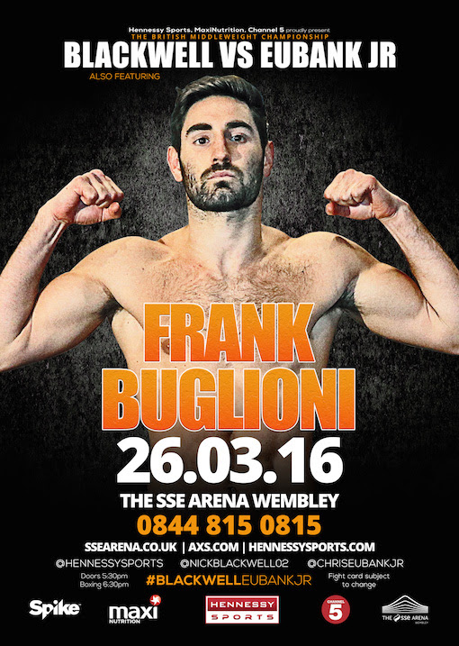 LONDON (9 MARCH) Former world super-middleweight title challenger Frank Buglioni begins his campaign as a light-heavyweight on March 26 at The SSE Arena and has British and Commonwealth titles in his sights.