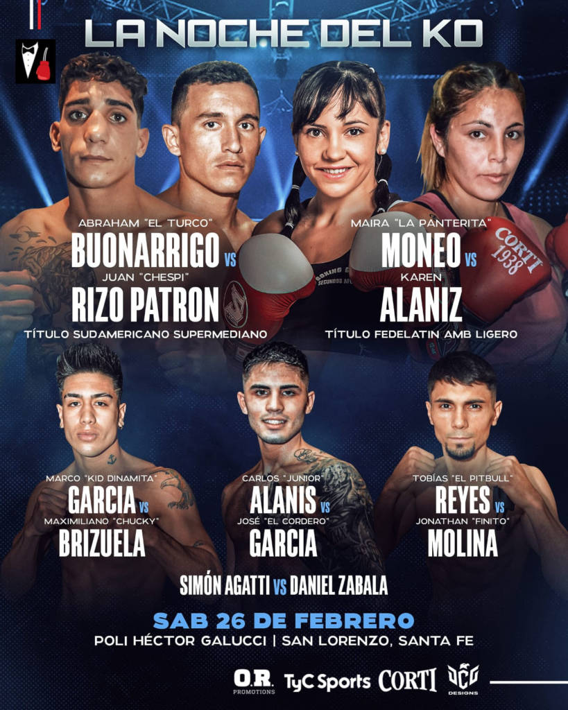 Una apasionante “Noche del KO” con un imperdible doble fondo titular, se avecina este sábado 26 de febrero en el Polideportivo Héctor Gallucci de la ciudad de San Lorenzo, Santa Fe, que podrá disfrutarse por la pantalla de TyC Sports, en vivo, a partir de las 00:15 (ya el domingo) y vía streaming en TyC Sports Play desde las 21:00, en el marco de una nueva producción internacional de OR Promotions.