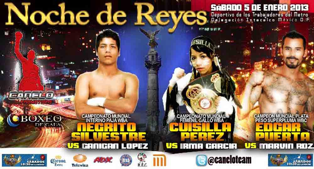 Ciudad de México, Distrito Federal, MÉXICO: Janet Pérez vs. Irma García, 10 asaltos, por el título mundial peso gallo femenino en poder de Pérez; Edgar Puerta vs. Abraham Rodríguez, 12 asaltos, por el campeonato plata peso superpluma (C.M.B.) de Puerta; Ganigan López vs. Josué Vega, 10 asaltos, peso mosca, Reyes Sánchez vs. Ramiro Alcaraz, 10 asaltos, peso superligero. Horario (Televisa): 9:00 p.m. (Hora de México)