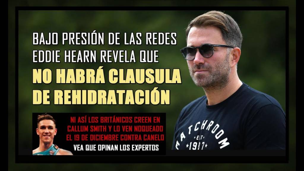 Eddie Hearn sorprendió a muchos, este jueves, con una buena noticia: no habrá cláusula de rehidratación en la pelea de Saúl Canelo Álvarez y Callum Smith. La revelación pudo ser una infidencia necesaria ante el aluvión de reclamos por parte de los fanáticos británicos en las redes sobre esa posibilidad en el contrato.