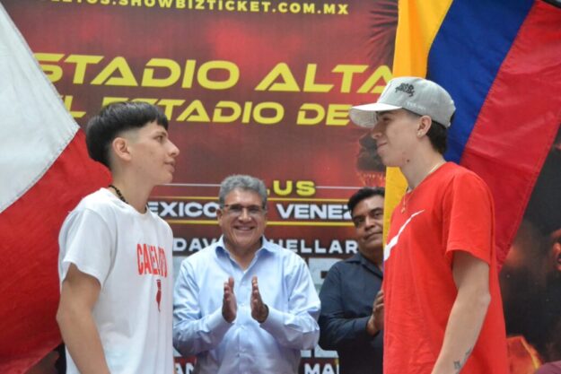 El invicto de 17 años, César ‘Canelito’ Pérez, sostendrá su primer enfrentamiento de corte internacional en Altamira, enfrentando al aguerrido colombiano Sebastián Rodríguez en una batalla que resultará intensa de principio a fin. Ambos púgiles intercambiaron miradas retadoras cuando estuvieron frente a las cámaras, portando orgullosos su bandera para un duelo que tiene muy pocas probabilidades de hacer “huesos viejos”, y en la que el nocaut estará presente sin duda alguna, pues ambos tienen poder en los nudillos y no dudarán en usarlo como parte del evento especial de la cartelera que presenta Latin KO Promotions, la empresa que dirige Oswaldo Küchle. Este evento se realiza en asociación con Cancún Boxing de Pepe Gómez y Boxing Time de Memo Rocha. La transmisión llegará a millones de hogares a través de las pantallas de Canal 5 en sus tradicionales ‘Sábados de Box’, el exitoso serial de Box Televisa, gracias a las facilidades otorgadas por el Gobierno Municipal de Altamira que encabeza el Dr. Armando Martínez Manríquez